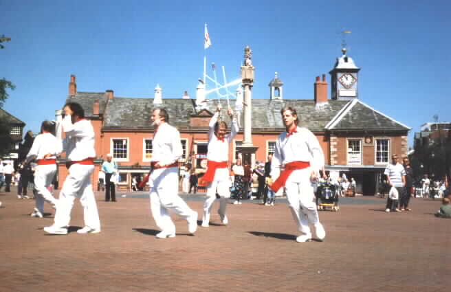 This is a dance for six people. I describe the dance as done by the Carlisle Sword team, so I refer to each dancer as "he" throughout. Please emend to "she" as appropriate. For more background to this dance see other pages. Anyone wishing to learn and perform the dance should contact Mike Jensen